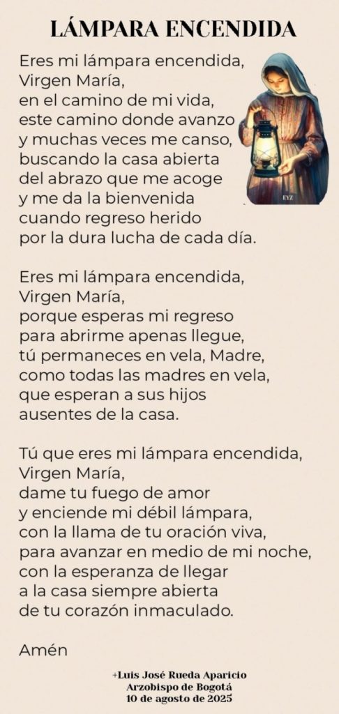Te invitamos hoy a orar con fe y con esperanza la siguiente oración que nos comparte el señor Cardenal Luis José Rueda Aparicio, Arzobispo de Bogotá.