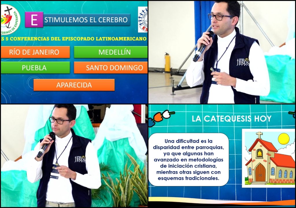 Ya entrando en materia, el presbítero señaló la importancia de la “pedagogía del buen humor” como herramienta fundamental en el acompañamiento catequético. Invitó luego a hacer memoria de las cinco conferencias generales del Episcopado Latinoamericano —Río de Janeiro, Medellín, Puebla, Santo Domingo y Aparecida— recordando los énfasis y aportes clave de cada una.
